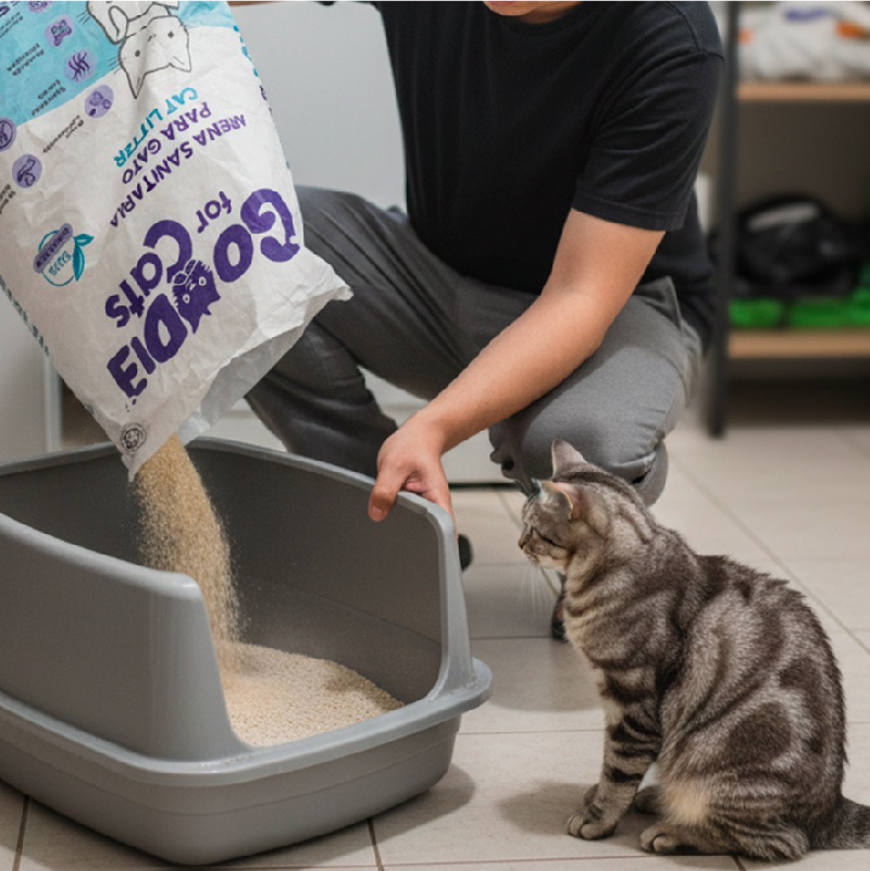 Arena 100% orgánica, compostable y reutilizable, súper aglomerante, libre de químicos y suave con sus patitas. Controla olores, no produce alergias y mantiene su espacio siempre fresco. Comodidad real para tu gato, tranquilidad total para ti.