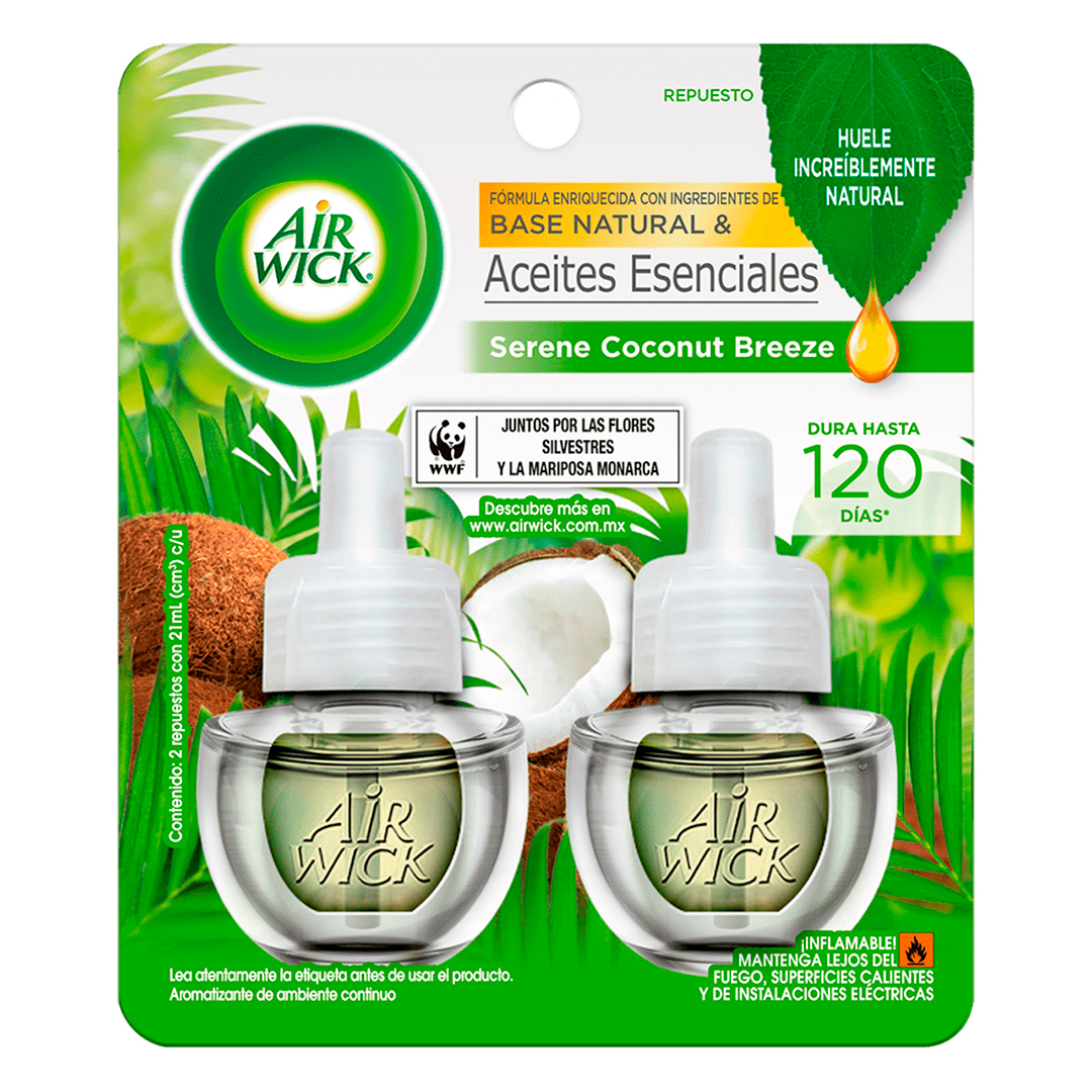 Ambientadores con fórmula con ingredientes de base natural y aceites esenciales transpórtate a un ambiente tropical, esta increíble fragancia combina lo mejor del aroma a coco y una brisa fresca de verano.